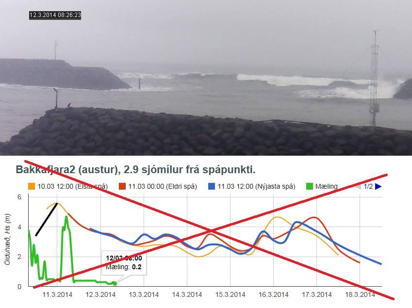 �?ldudufl við Landeyjahöfn, sýnir að klukkan 9:00 hafi verið 0,4 metra ölduhæð. Samkvæmd duflinu hefur ölduhæð verið undir einum metra síðustu tvo daga en fram kemur á facebook síðu Herjólfs að duflið sé bilað. Myndin sem fylgir fréttinni er fengin af facebook síðu Herjólfs en þar sýnir hún annars vegar niðurstöðu ölduduflsins, grænu línuna, og […]