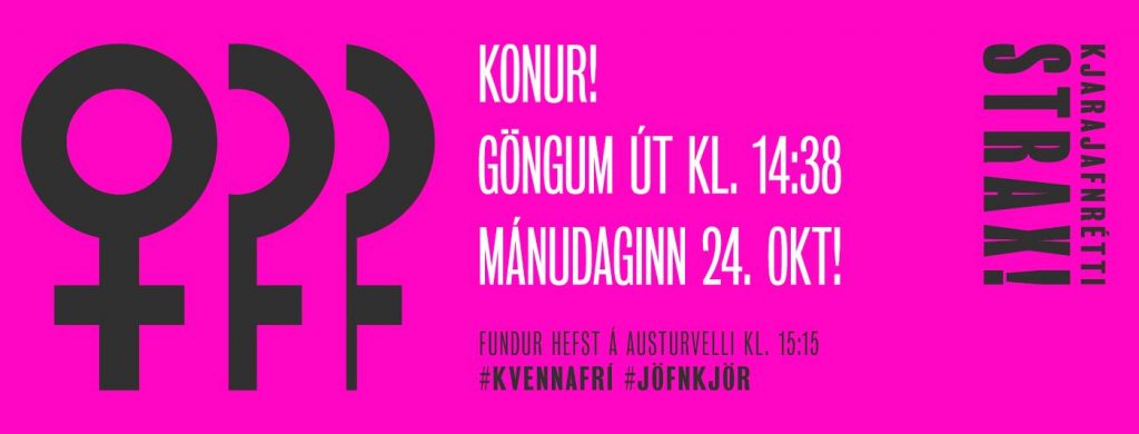 Konur eru hvattar til að leggja niður vinnu kl. 14:38 og mæta svo á Bárugötuna í dag. Til þess að vekja athygli á launamun kynjanna á atvinnumarkaðnum. Kjörorð hans er Kjarajafnrétti strax! Maríanna Traustadóttir, sérfræðingur í jafnréttis- og umhverfismálum hjá Alþýðusambandi Íslands, segir að vekja þurfi athygli á stöðu kvenna á atvinnumarkaðnum. Síðustu kannanir VR, […]