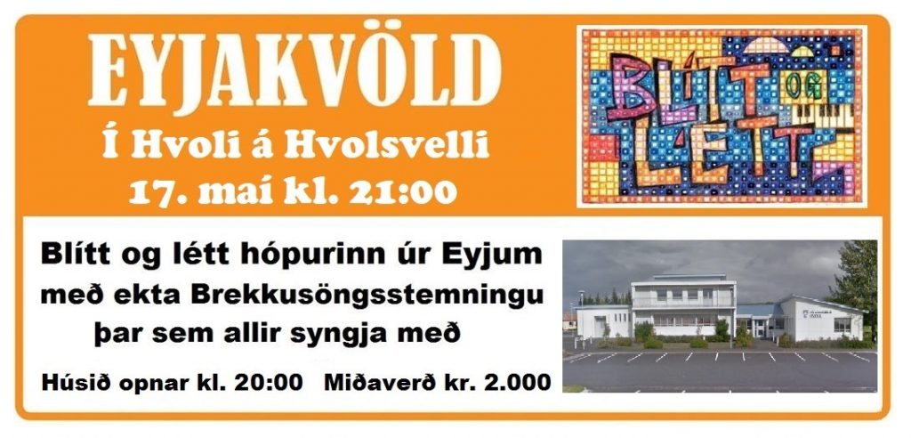 Blítt & létt hópurinn siglir yfir sundið og heldur allra síðasta Eyjakvöld vetrarins í Hvoli á Hvolsvelli í kvöld föstudagskvöld. (meira…)