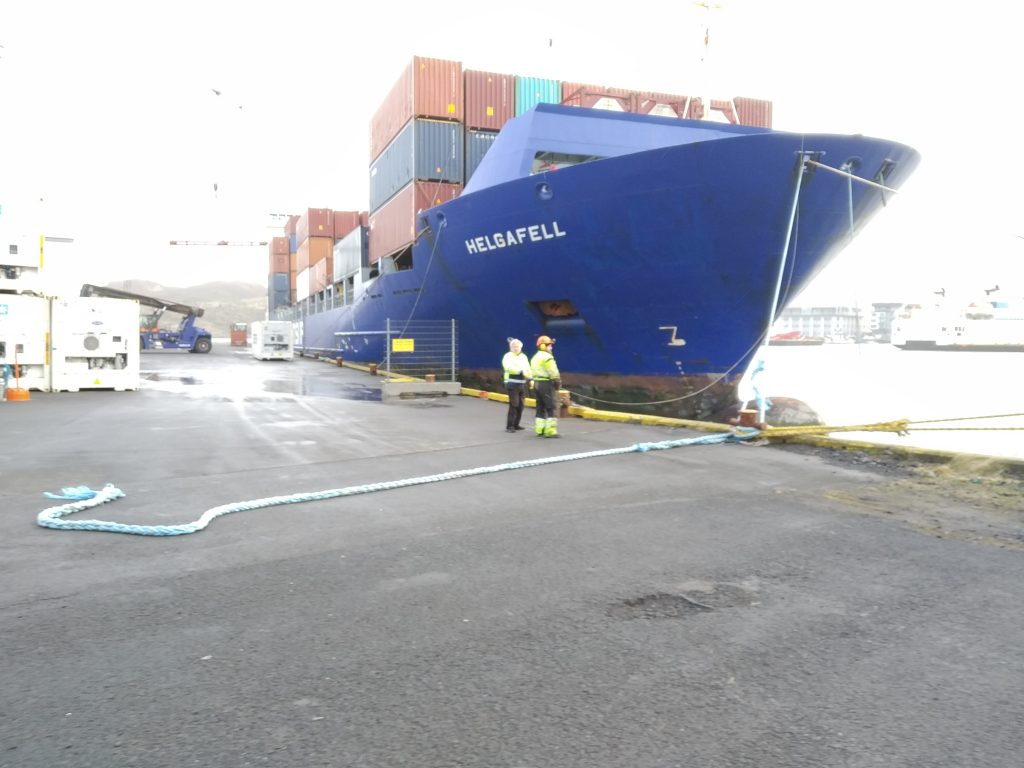 Landfestar slitnuðu þar sem flutningaskipið Helgafell lá bundið við bryggju í Vestmannaeyjum í dag. Erfiðlega gekk í morgun að koma skipinu upp að bryggju en hvöss norðan átt hefur gengið yfir Vestmannaeyjar frá því í gær. „Þeir þurftu að bíða aðeins í morgun því það voru snarpar kviður við bryggju, annars hefur gengið vel að lesta […]