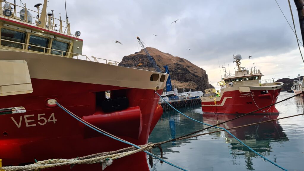 Eyjaskipin Bergey VE og Vestmannaey VE lönduðu bæði í Þorlákshöfn í gær. Rætt er við skipstjóranna á vefsíðu Síldarvinnslunnar. Þar eru þeir spurðir fregna af veiðiferðinni. Jón Valgeirsson á Bergey lét vel af sér. „Við hófum túrinn út af Sandgerði en þar var þokkalegt skjól. Síðan var haldið á Sannleiksstaði út af Þorlákshöfn og þar var fyllt. Aflinn var mjög blandaður; mest af karfa, síðan ýsa, langa og þorskur. Næst gerum við ráð fyrir að veiða fyrir austan. Það er semsagt Austfjarðaskurkur á dagskránni,” sagði Jón.