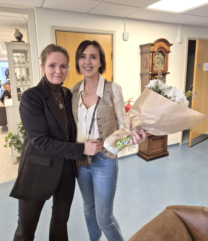 Aníta Sif Vignisdóttir var heiðruð af Vestmannaeyjabæ fyrir störf sín og hennar mikilvæga framlag til þjónustu við eldri borgara. Hér tekur hún við blómum frá Írisi bæjarstjóra.