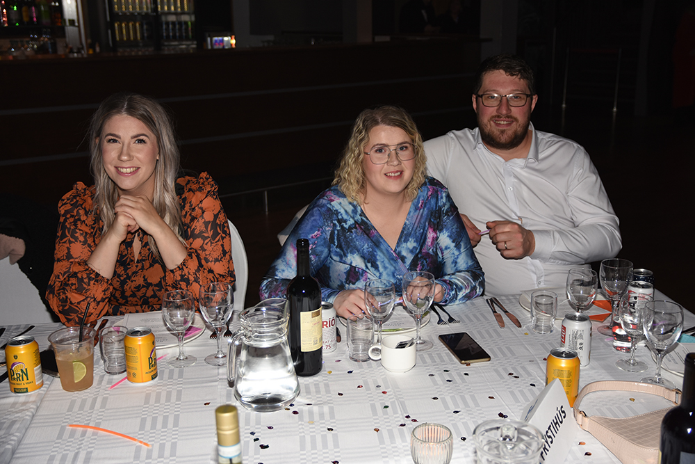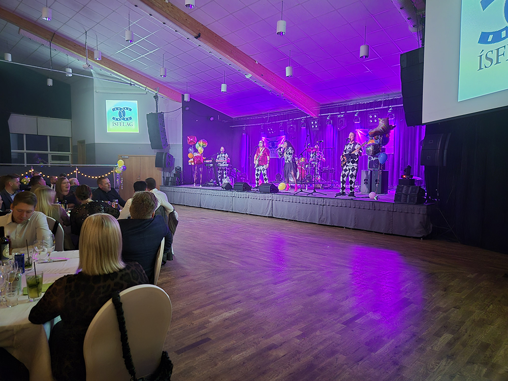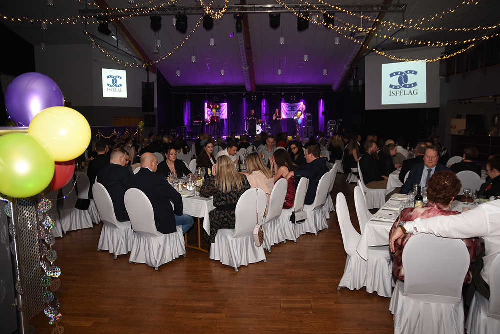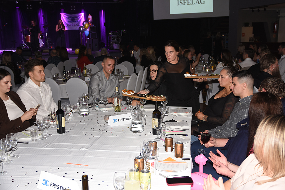 Árshátíð Ísfélagsins fór fram í Höllinni í gær og tókst einstaklega vel til. Veisustjórar kvöldsins voru þær Ólöf Skaftadóttir og Kristín Gunnarsdóttir, stjórnendur hlaðvarpsins Komið gott.