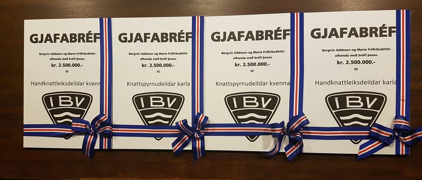 Knattspyrnu- og handknattleikslið ÍBV fengu tíu milljónir að gjöf í gærkvöldi þegar Bergvin Oddsson og María Friðriksdóttir afhentu þeim 10 milljónir króna. Beddi og Dúlla eins og flestir þekkja þau héldu uppá samanlagt 150 ára afmæli sitt og þar var tilkynnt um gjöfina. Handknattleiksdeild karla, handknattleiksdeild kvenna, knattspyrnudeild karla og knattspyrnudeild kvenna fá 2,5 milljónir […]