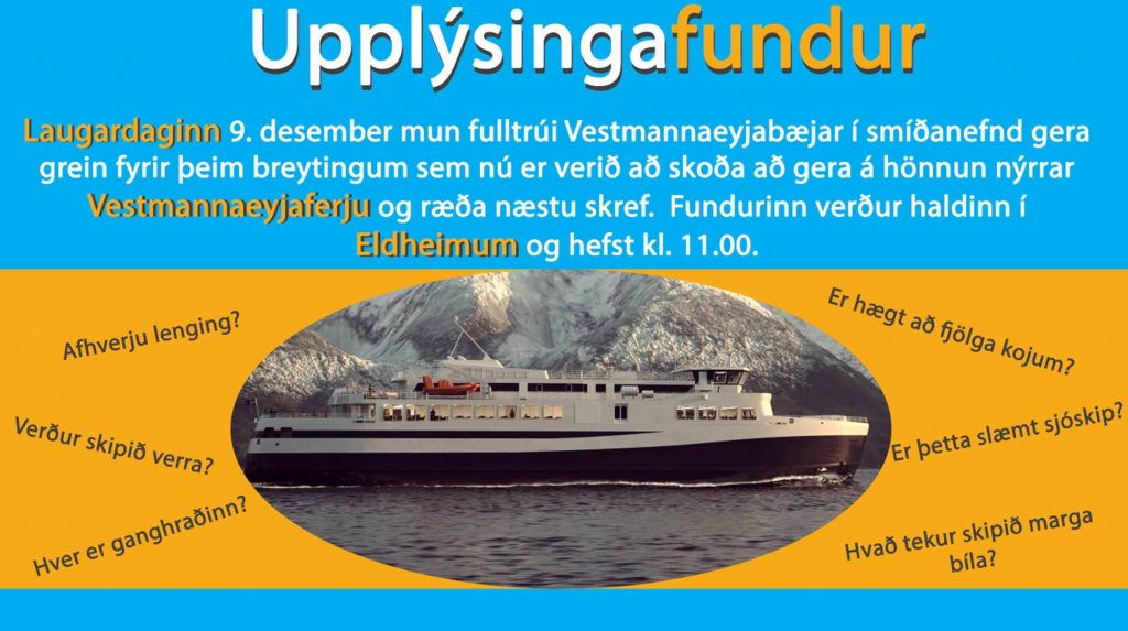 Fréttatilkynning – Opinn fundur vegna breytinga nýrrar Vestmannaeyjaferju