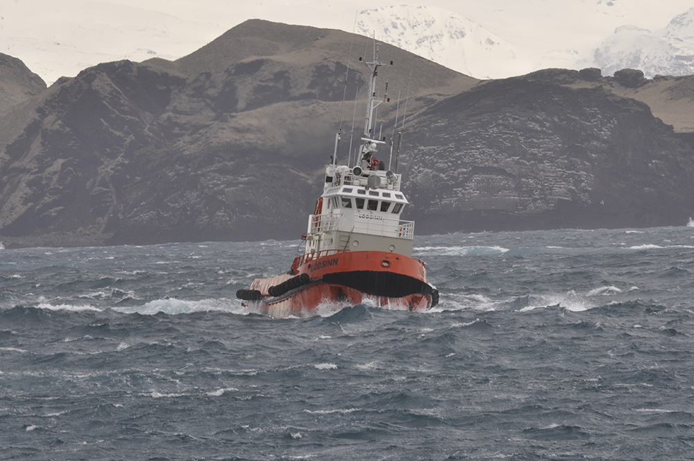 Fjölmargir fylgdust með þegar Jarlinn var hýfður á land