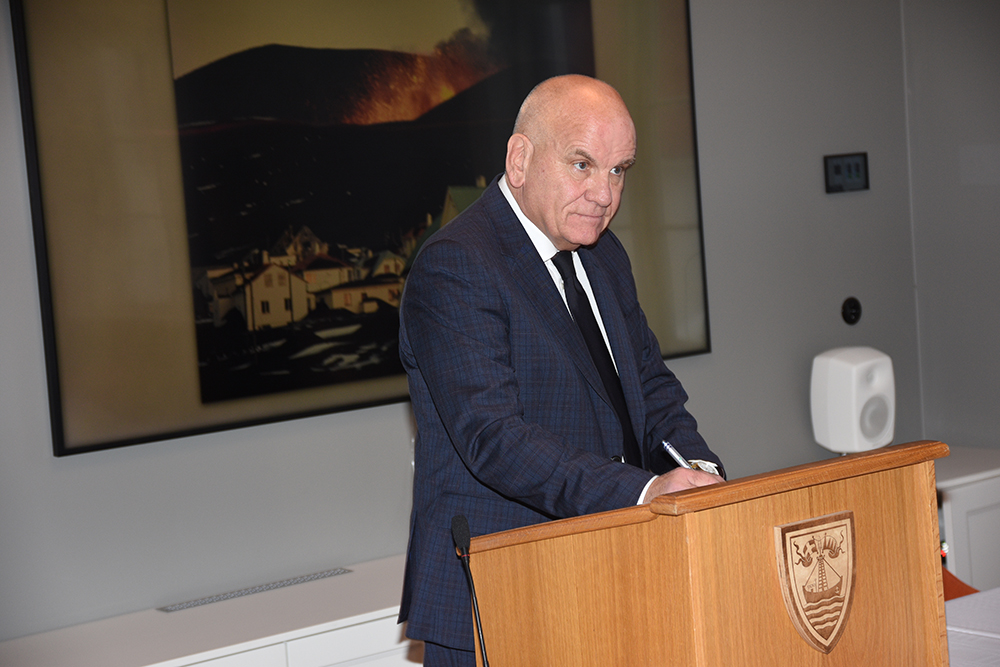 Forseti bæjarstjórnar Vestmannaeyja í ræðustólnum. Eyjafréttir/Eyjar.net: Óskar Pétur