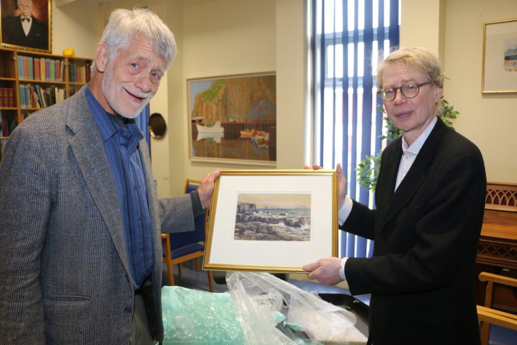 John Quist afhendir listaverk hins látna prófessors Rupert Charles Loucks til Safnahússins