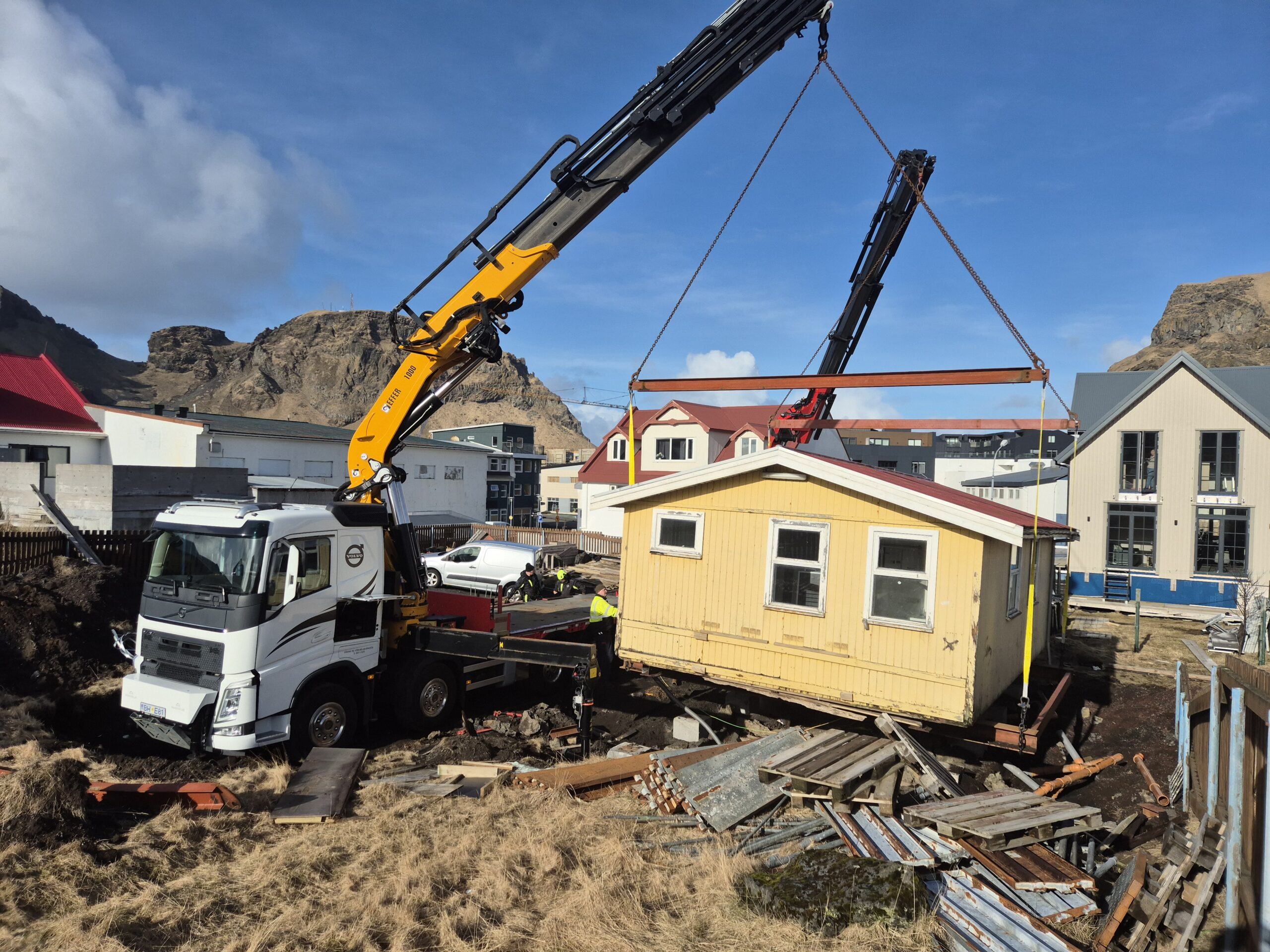 Aðgerðin gekk vel að sögn fréttaritara Eyjafrétta og fór flutningurinn fram án teljandi vandræða. Ljósmyndararnir Óskar Pétur Friðriksson og Halldór B. Halldórsson fylgdust með flutningnum og festu hann á mynd.