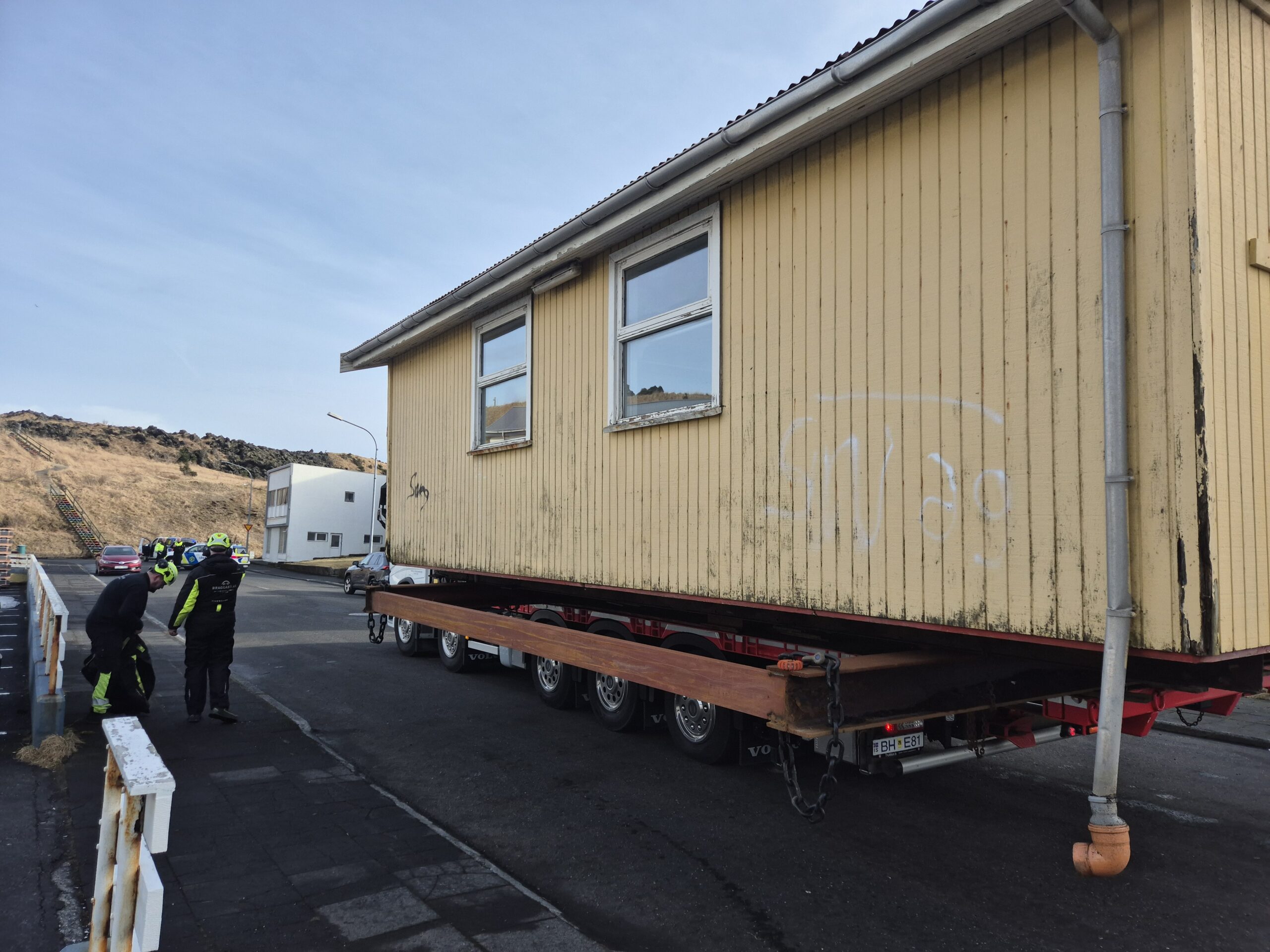 Húsið komið á vagninn. Eyjafréttir/Eyjar.net: ÓPF