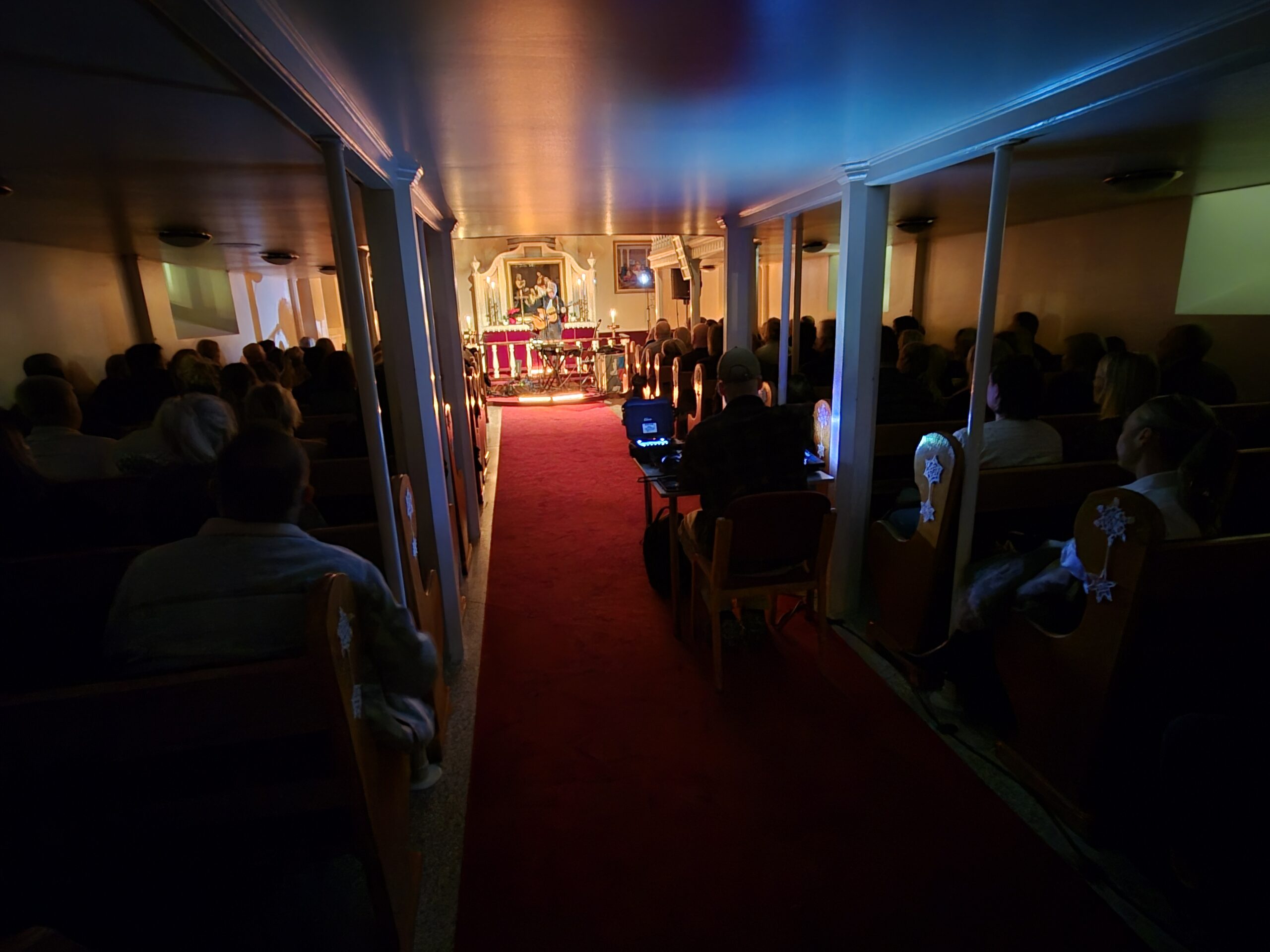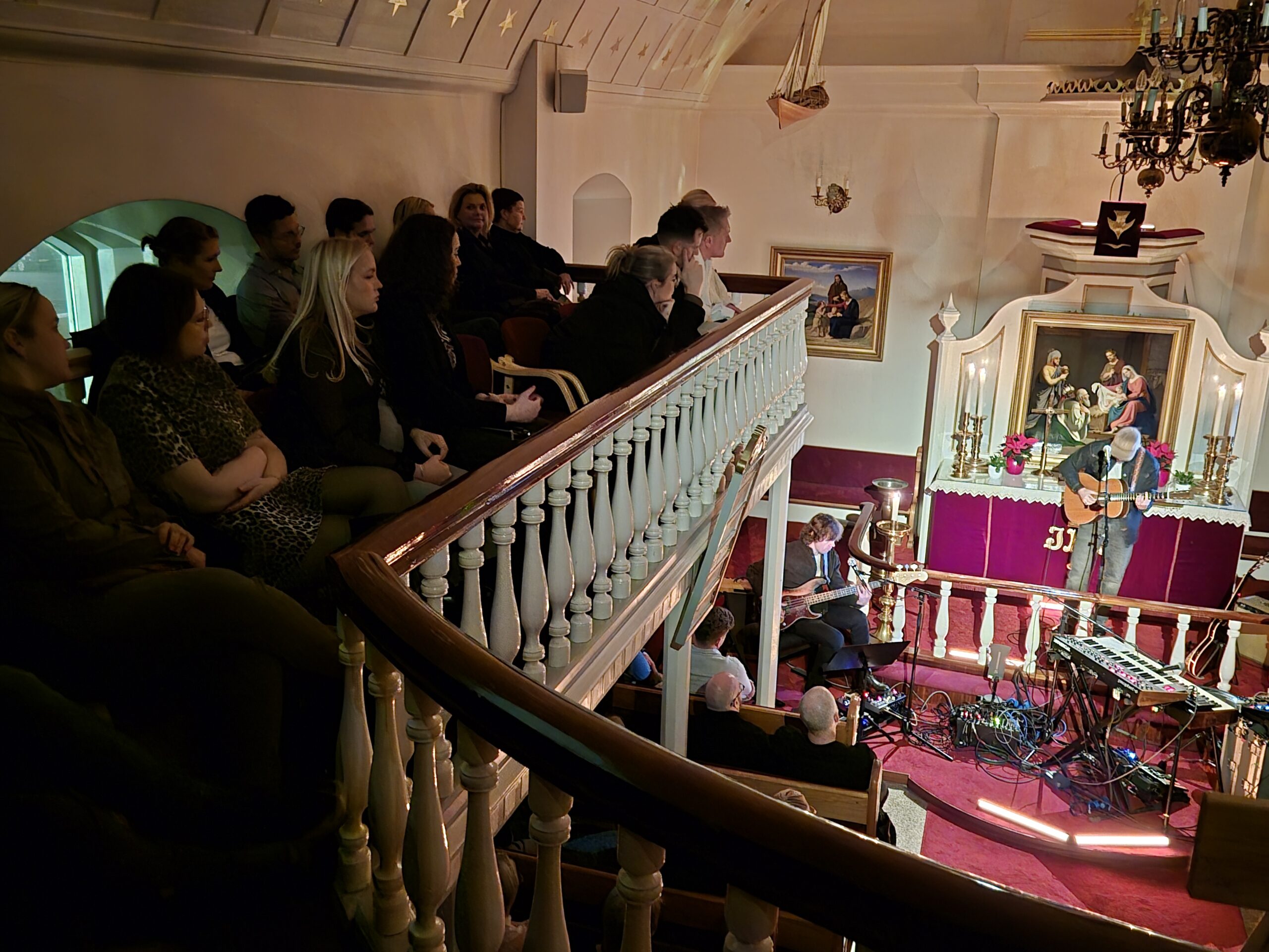 Gestir nutu tónlistarinnar af innlifun og var stemningin í kirkjunni að sögn viðstaddra bæði friðsæl og áhrifarík. Óskar Pétur Friðriksson, ljósmyndari Eyjafrétta, var á staðnum og smellti nokkrum myndum af tónleikunum.