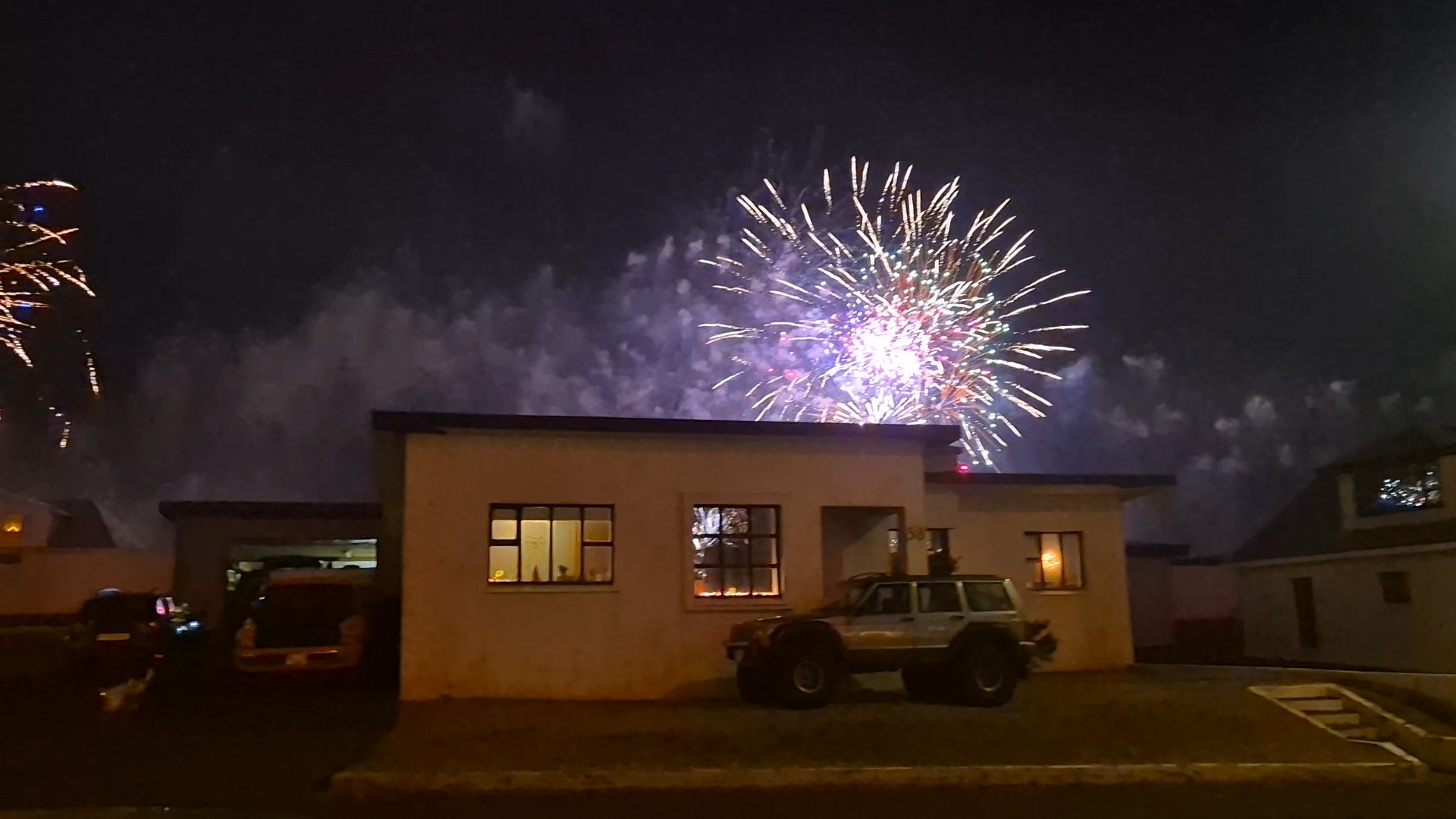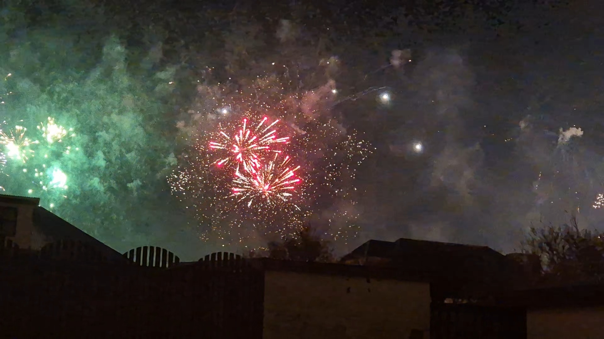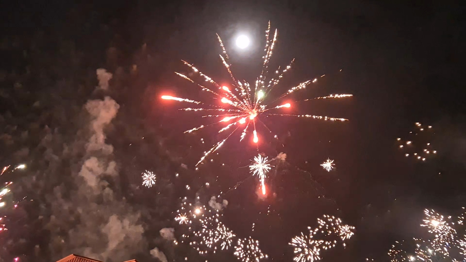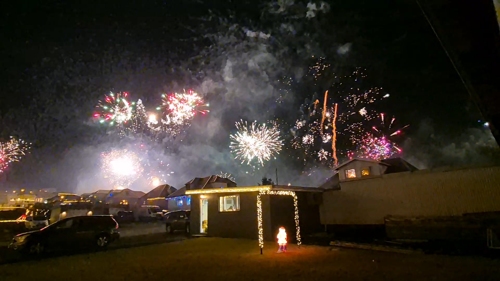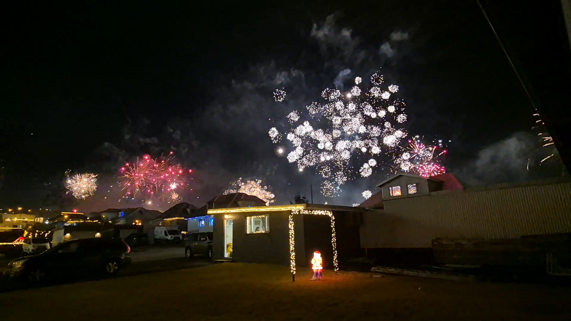 Áramótin í Vestmannaeyjum voru einstaklega glæsileg að þessu sinni. Mikið var skotið upp af flugeldum þegar árið kvaddi. Himinninn lýstist upp í öllum regnbogans litum og víða mátti sjá fólk safnast saman til að njóta sýningarinnar.