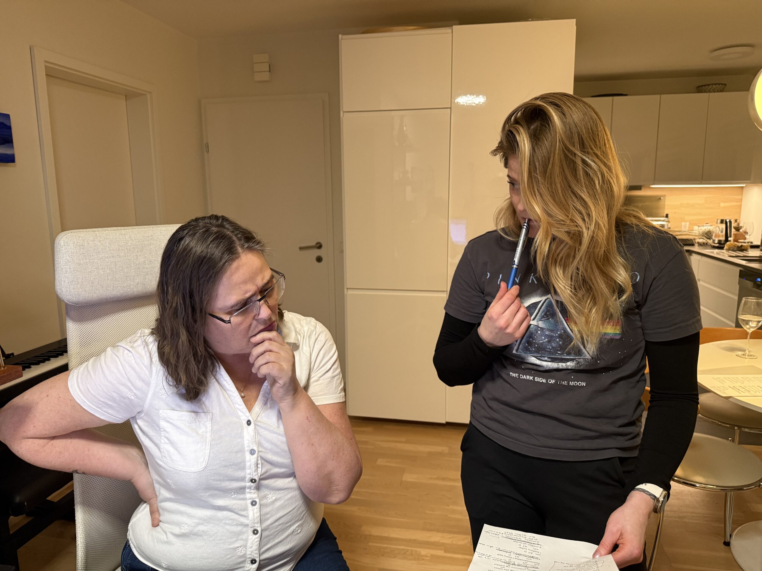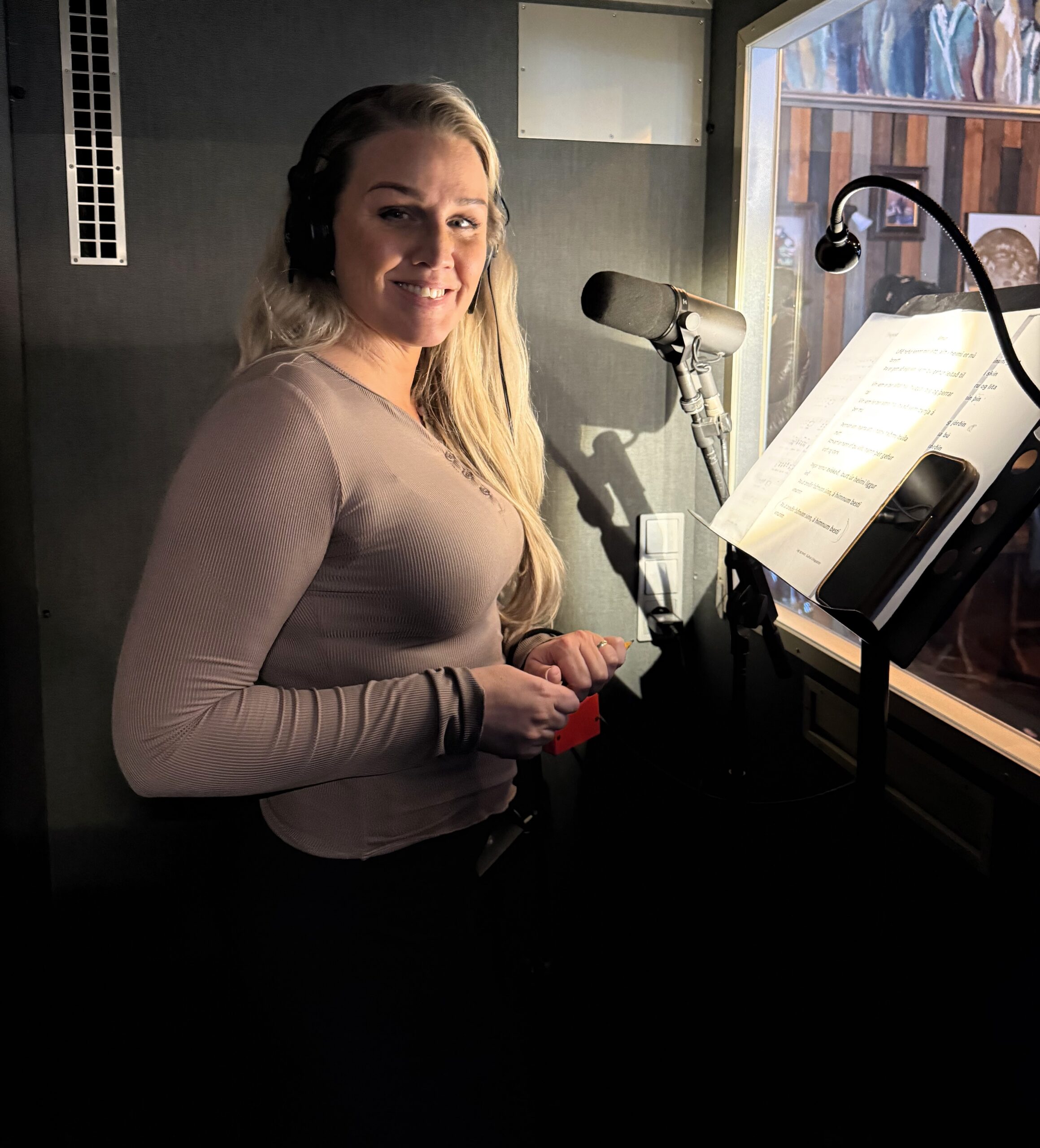 Mæðgurnar æfa sig fyrir upptöku. Guðrún og Jóhanna Björk.