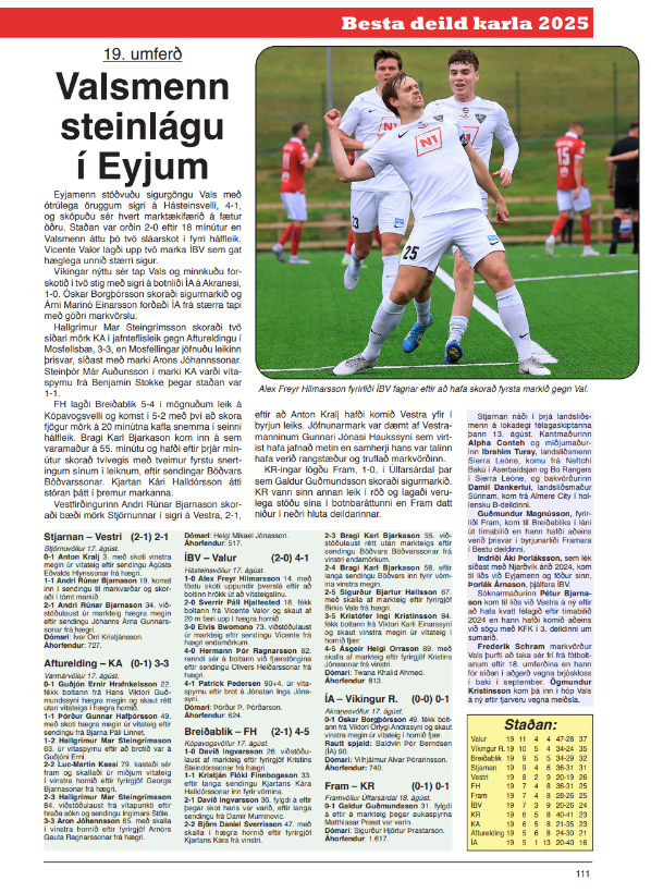 Í bók Víðis Sigurðssonar íþróttafréttamanns á Morgunblaðinu, Íslensk knattspyrna 2025 er að finna áhugaverðar greinar þar sem ÍBV karla og kvenna í meistaraflokki koma við sögu auk yngri flokkanna. Karlarnir héldu sæti sínu í Bestu deildinni og konurnar endurheimtu sæti sitt eftir tvö ár í Lengudeildinni.