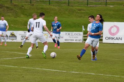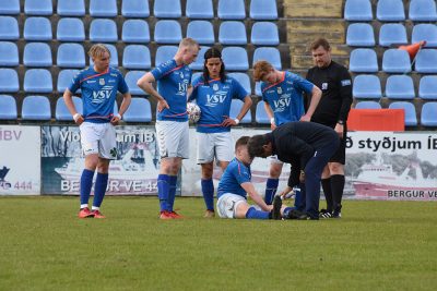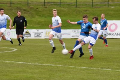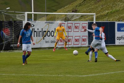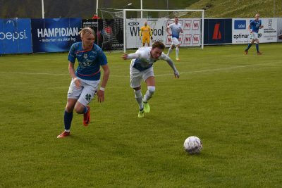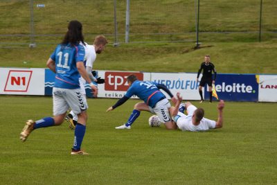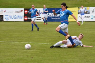 Leikurinn var bráðfjörugur og jafn. En það var Hallgrímur Þórðarsson sem kom heimamönnum yfir með marki á 79. mínútu. 1-0.
