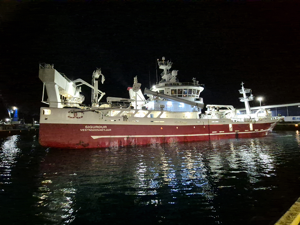 Loðnan færist nú hægt og sígandi með suðurströndinni til vesturs og gæti það haft jákvæð áhrif á framhald vertíðarinnar. Veðurspáin ætti einnig að vera veiðum hagstæð um helgina. Sigurður kastaði þrisvar sinnum í túrnum. Fyrsta kastið var prufukast sem gaf um 20 tonn, en næstu köst voru mun stærri – um 500 tonn annars vegar og 400 tonn hins vegar.