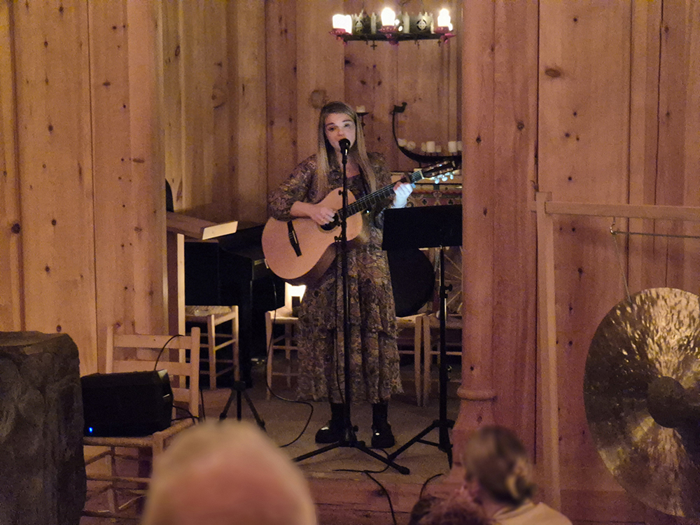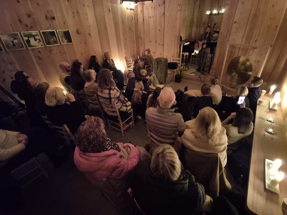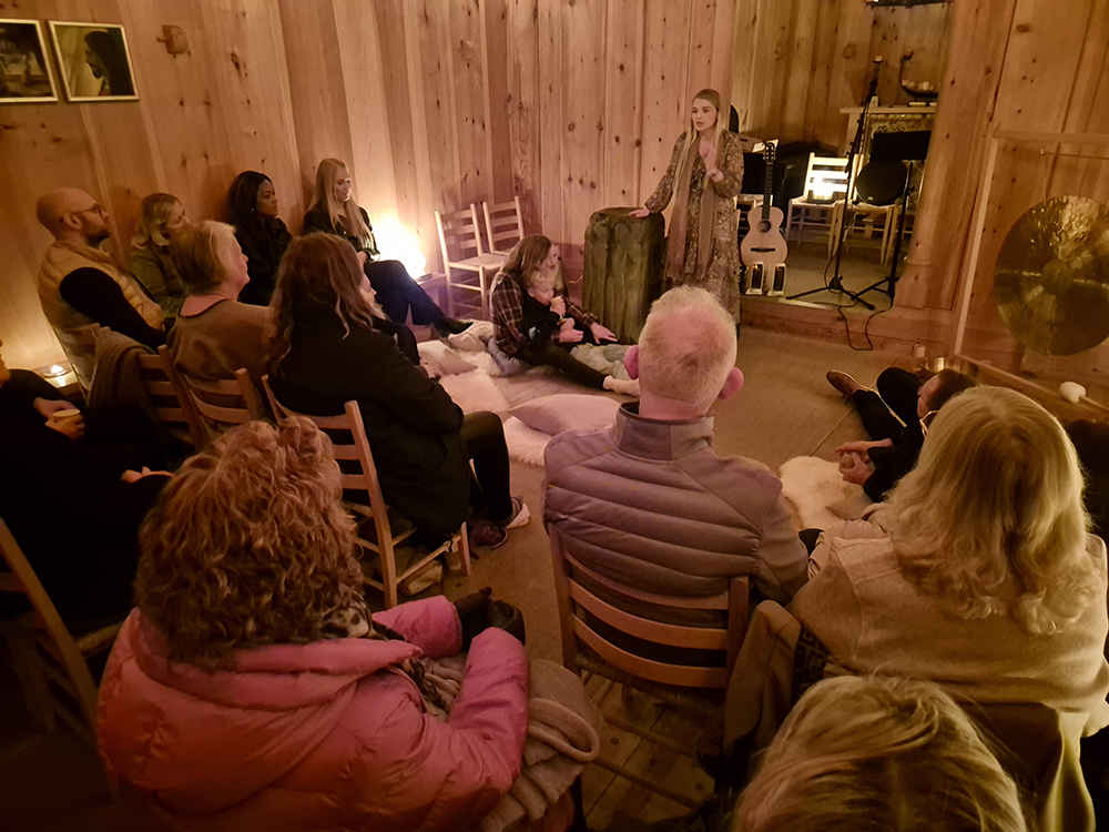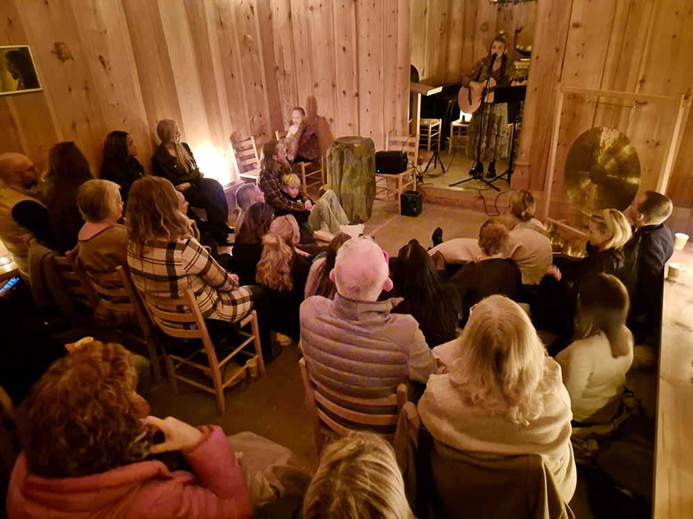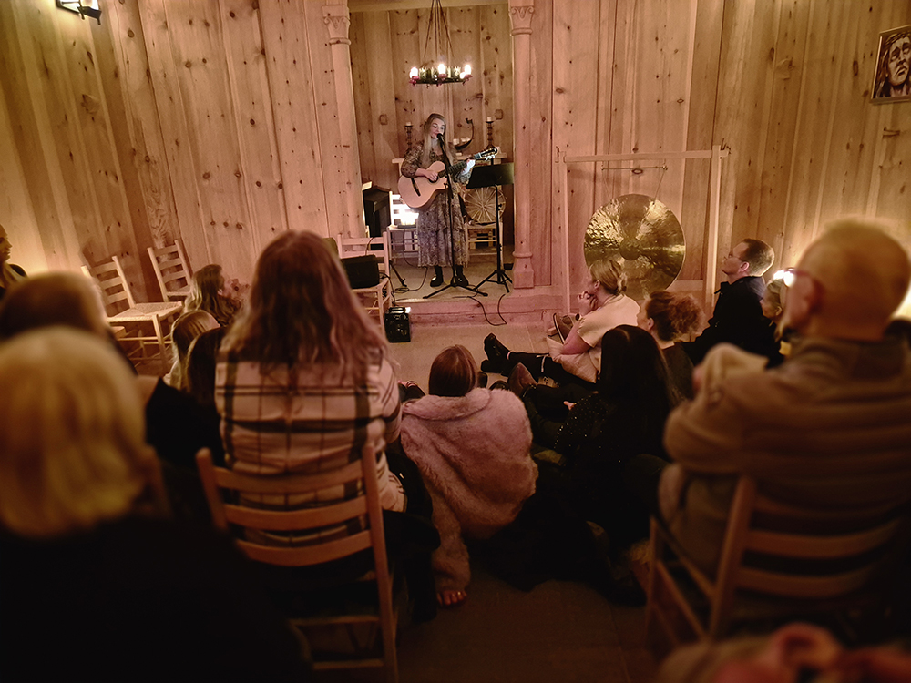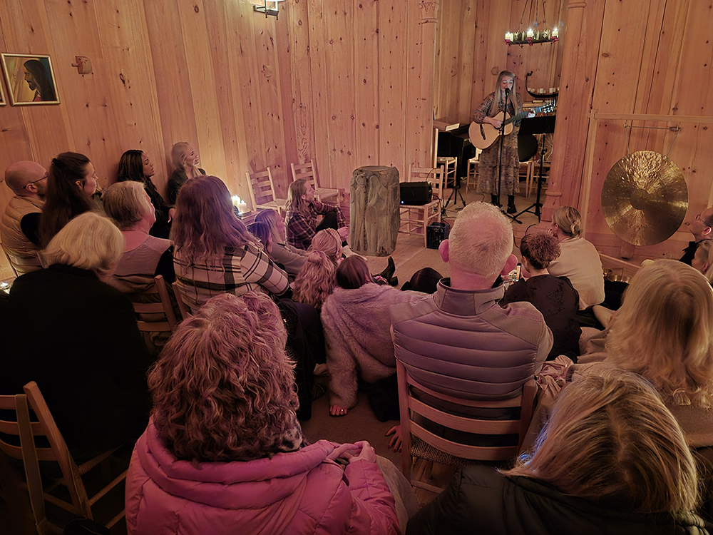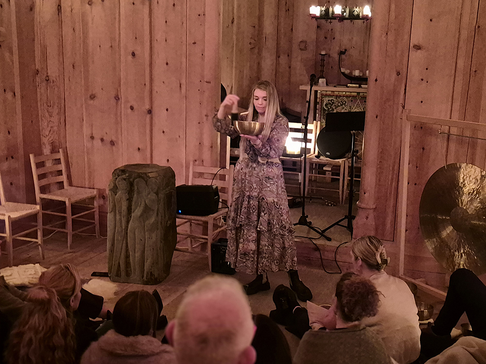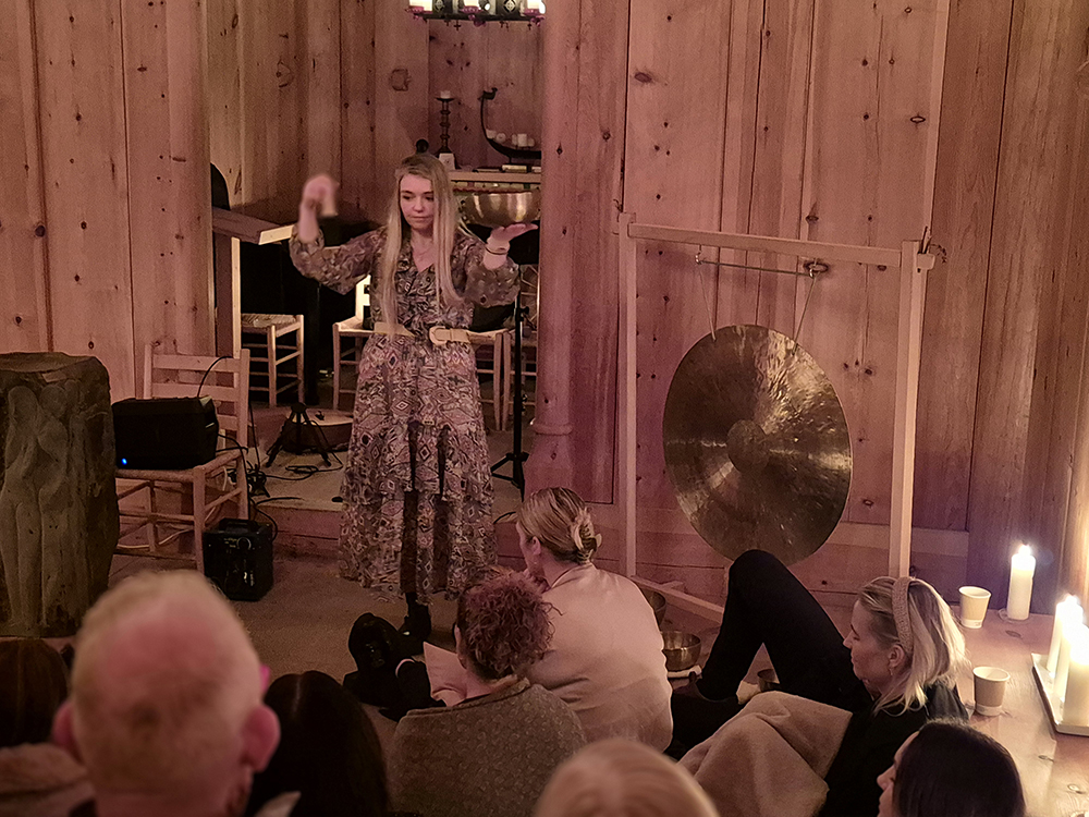 Eygló, sem er frá Eyjum, fléttaði saman klassískum eyjalögum, frumsaminni tónlist, tónheilun og möntrusöng á fallegan hátt.