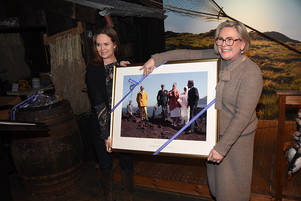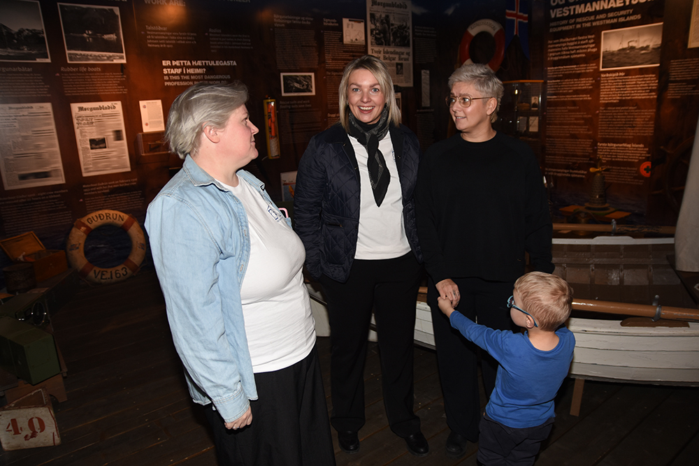 Heimsókn forsetahjónanna til Vestmannaeyja hófst í gær og lýkur í kvöld. Fyrsti liður heimsóknarinnar var móttaka og opið hús í Sagnheimum, þar sem Halla Tómasdóttir forseta Íslands og Björn Skúlason var tekið hátíðlega.