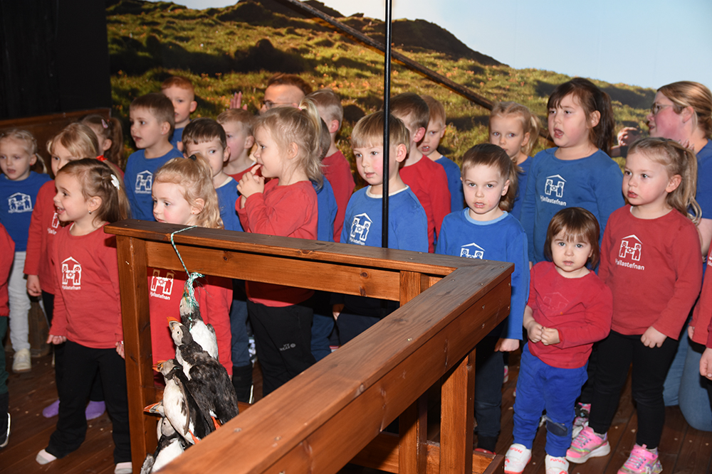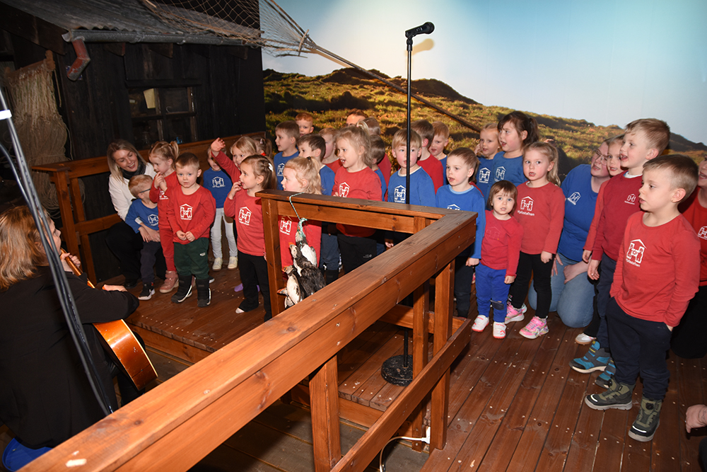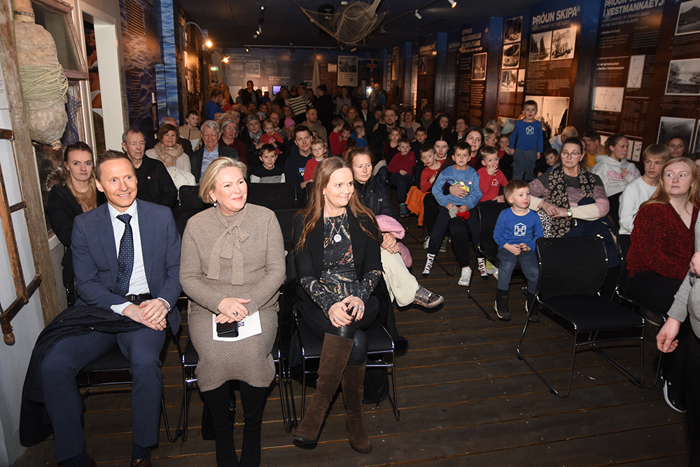Bæjarbúar fjölmenntu í Sagnheima og nutu samveru með forsetahjónunum. Á dagskrá voru tónlistaratriði, auk þess sem börn úr leikskólanum Sóla sungu. Þá fluttu forseti og bæjarstjóri stutt ávörp. Óskar P. Friðriksson, ljósmyndari Eyjafrétta mætti í Sagnheima og má sjá myndasyrpu hans hér að neðan.