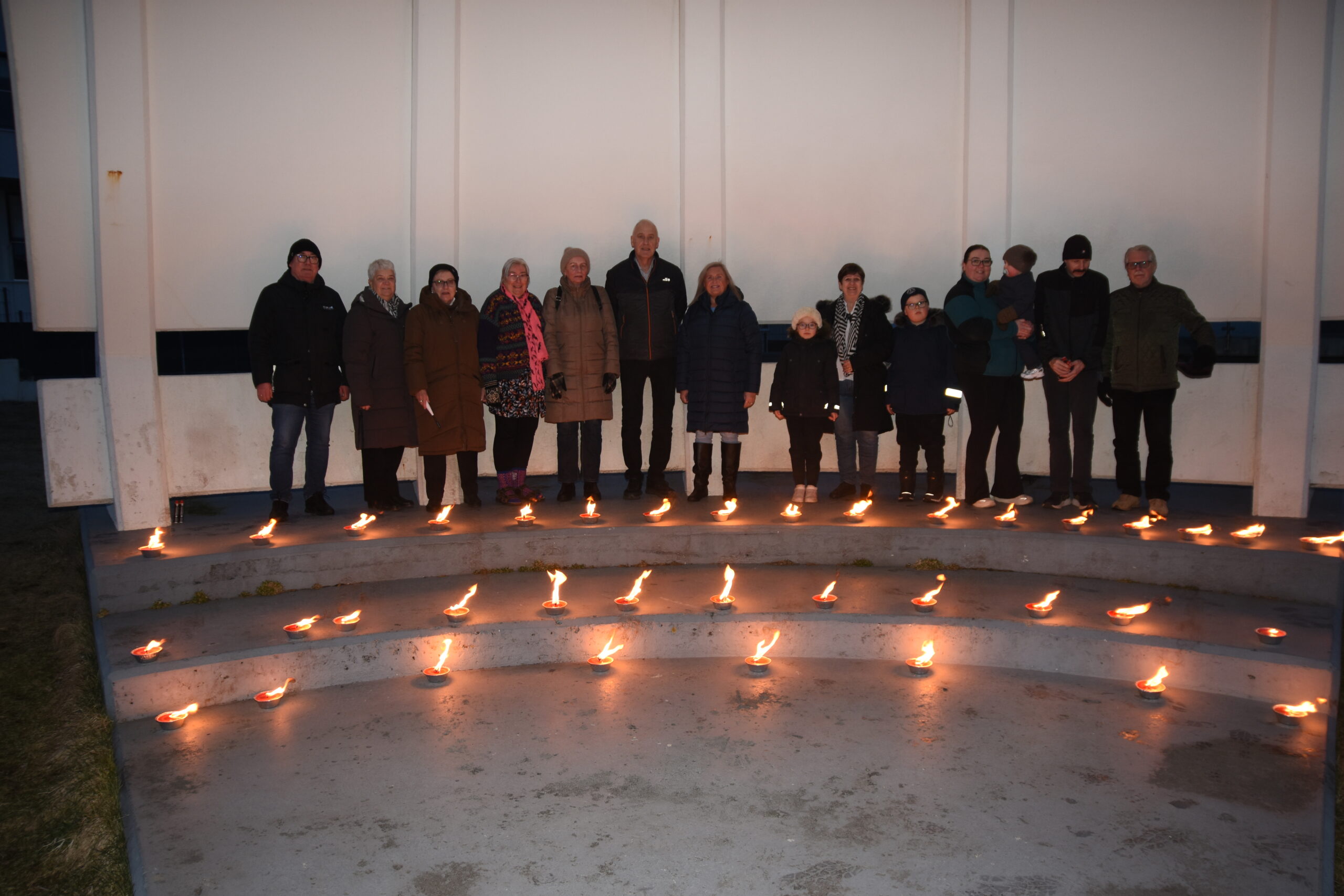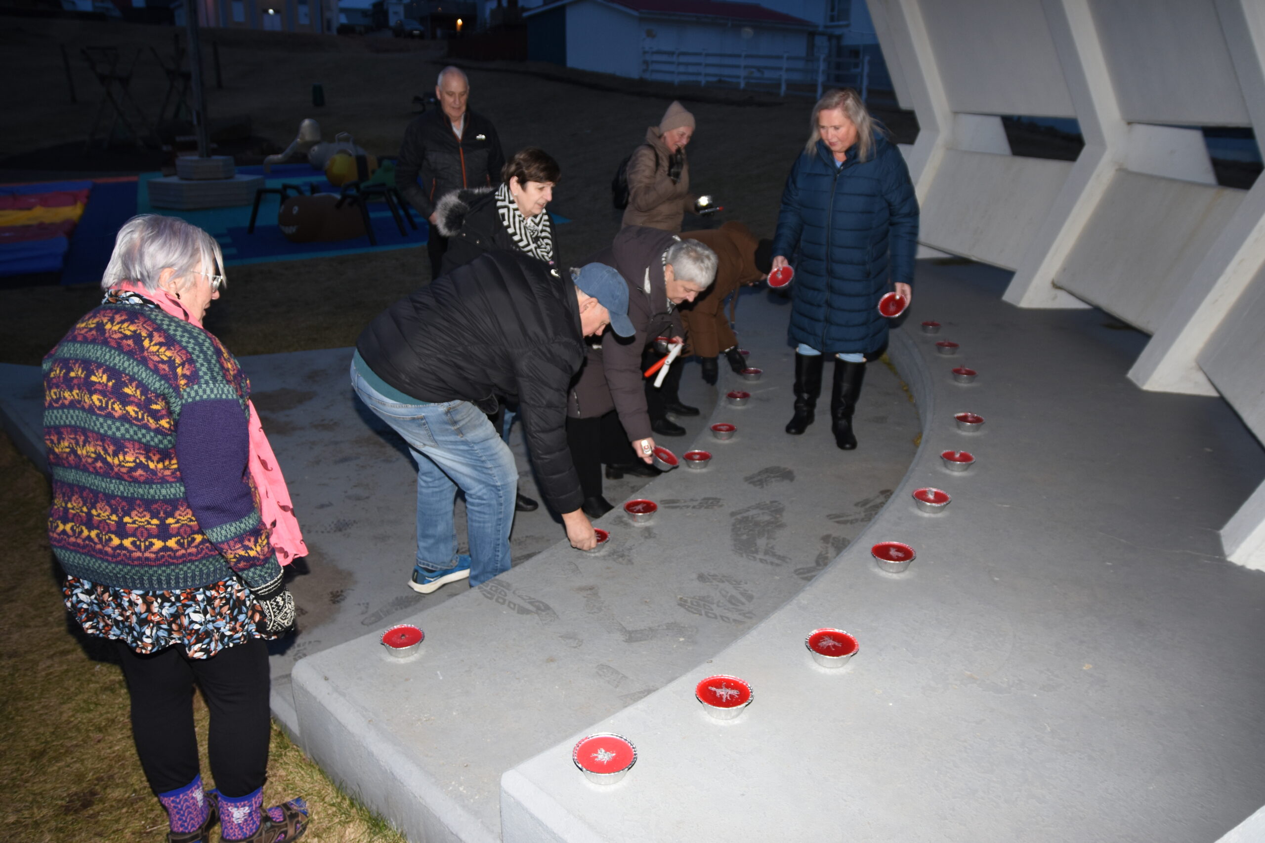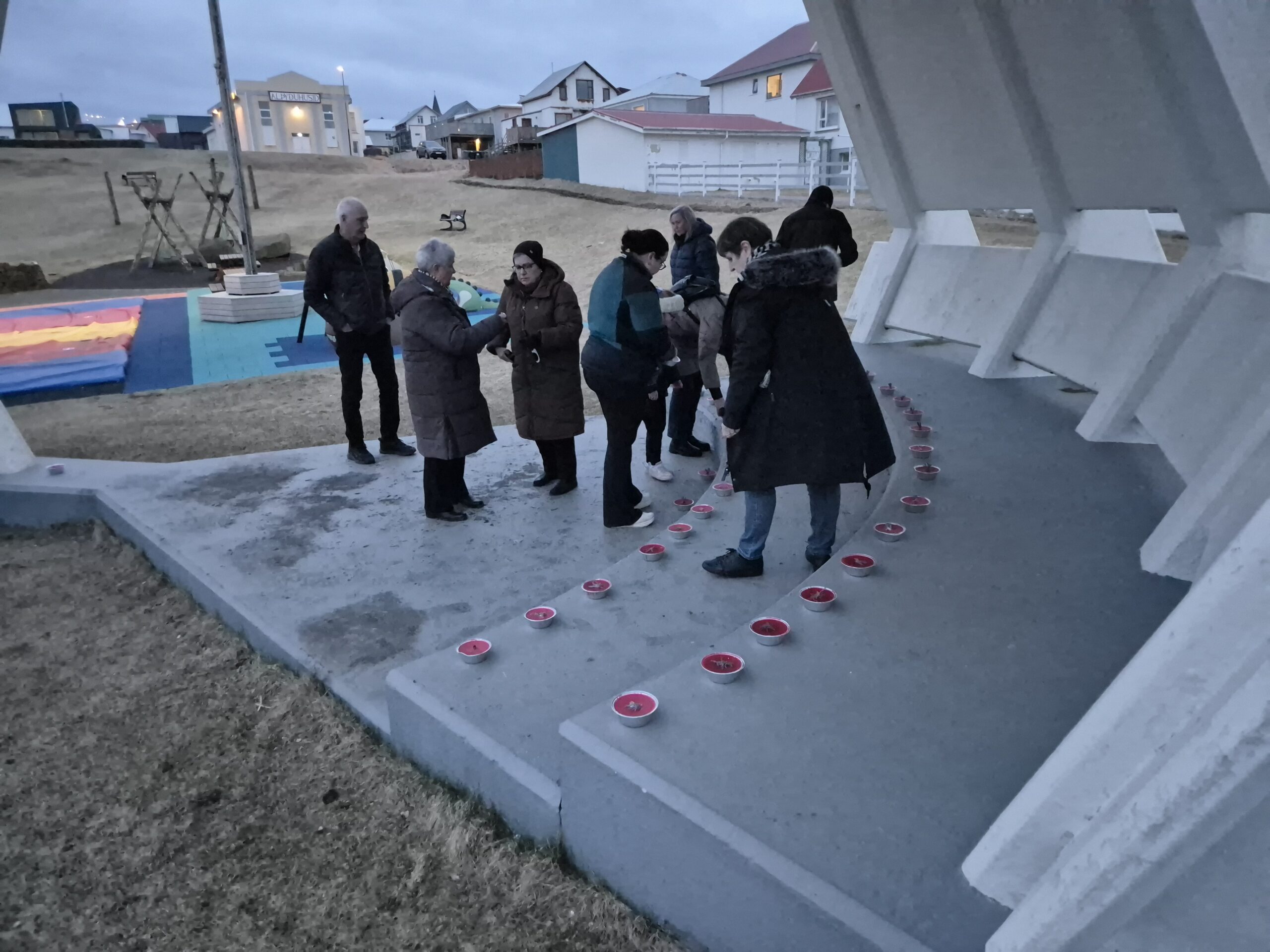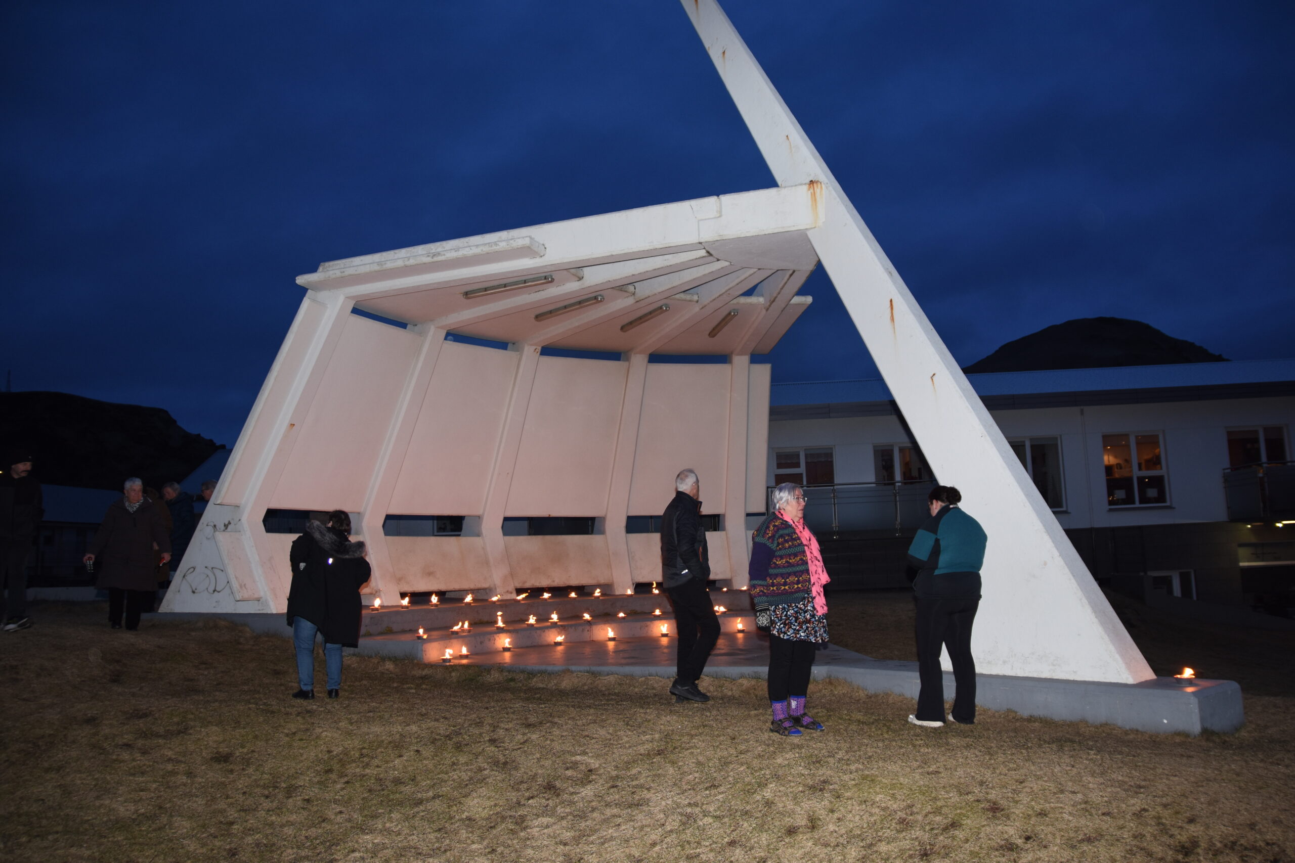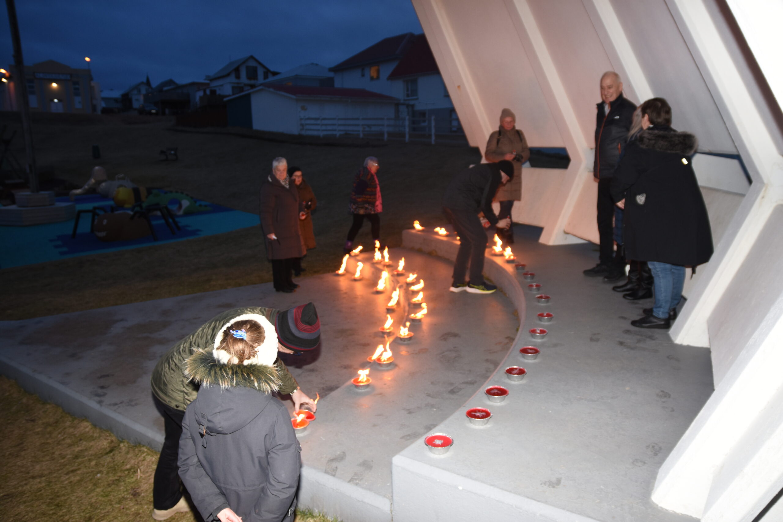 Að lokinni samveru var haldið að minnisvarða Oddgeirs Kristjánssonar þar sem kveikt var á 37 kertum til minningar og stuðnings. Kertin loguðu í kvöldkyrrðinni og settu hátíðlegan svip á stundina.