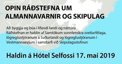 Samtök sunnlenskra sveitarfélaga, lögreglustjórinn á Suðurlandi og lögreglustjórinn í Vestmannaeyjum í samstarfi við Skipulagsstofnun standa að ráðstefnu um almannavarnir og skipulag sem fram fer á Hótel Selfossi þann 17. maí nk. kl 9:00 – 15.00.