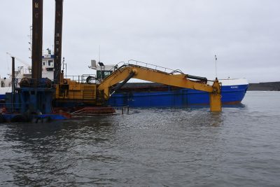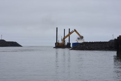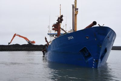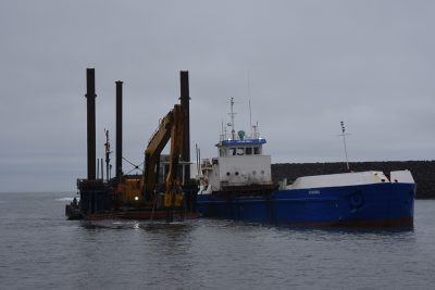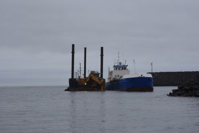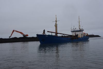 Í gær voru miklar framkvæmdir og dýpkað í Landeyjahöfn. Óskar Pétur Friðriksson ljósmyndari Eyjafrétta var á staðnum.