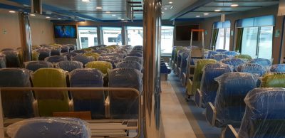 Nú styttist í að ný ferja okkar eyjamanna komi til landsins. Andrés Sigurðsson, sem á sæti í smíðanefnd fyrir hönd Vestmannaeyjabæjar, sagði í viðtali í síðustu viku að skipið væri virkilega flott og stöðugt, en hann var þá staddur í Póllandi að siglingaprófa skipið. Hérna má sjá nýlegar myndir af skipinu sem skipafélagið birti.
