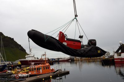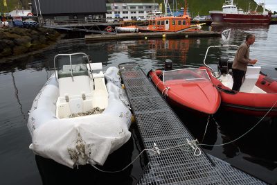 Seinni partinn í dag var Lögreglan kölluð að smábátabryggjunni í Eyjum vegna sökkvandi slöngubáta. Þá var Björgunarfélagið einnig kallað til aðstoðar.