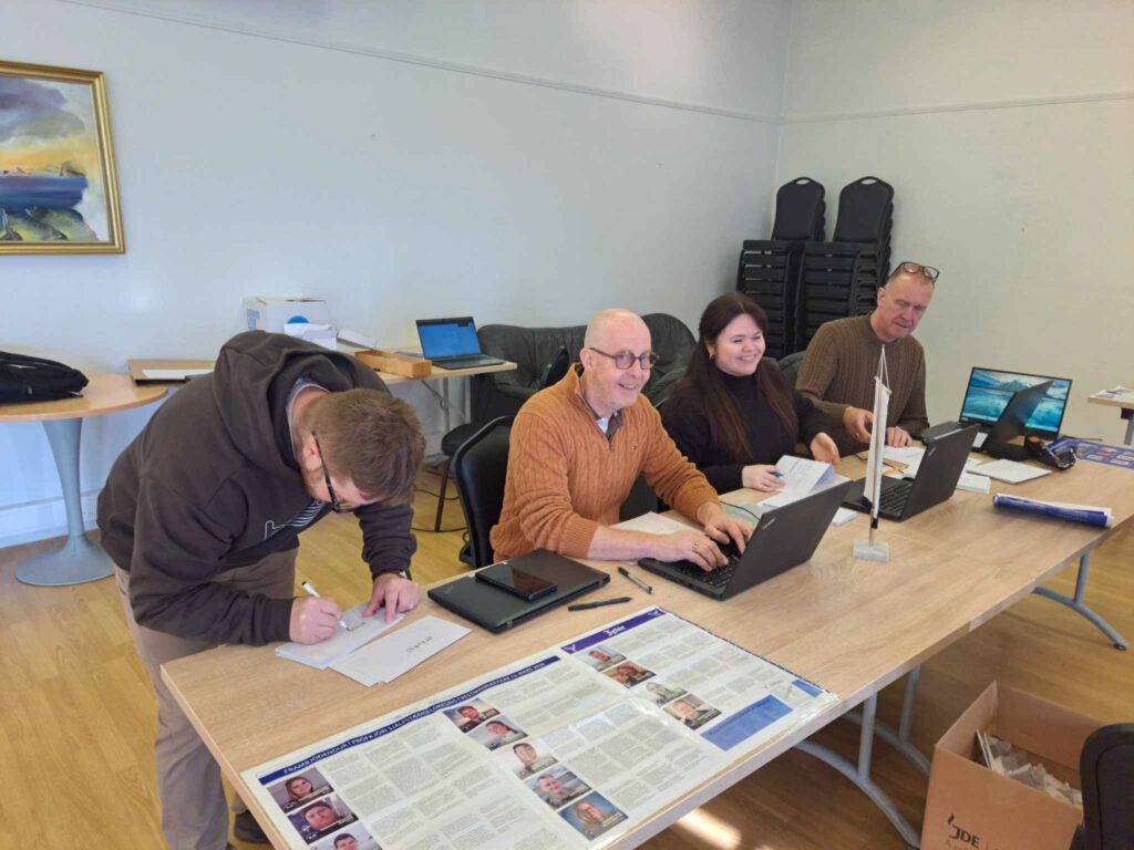 Kjörstjórn að störfum í gær, Bergur, Bjarni Ólafur, Theódóra og Grímur.