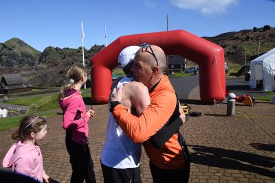 Ljósmyndari Eyjafrétta Óskar Pétur Friðriksson var á svæðinu og hægt er að sjá myndirnar hér að neðan. Einnig má sjá hér fyrir neðan myndband þegar Þórólfur kemur fyrstur í mark og dætur hans taka á móti honum. „Þetta var ótrúlega gaman. Þetta er skemmtilegasta og fallegasta útivist sem ég hef stundað,“ segir Þórólfur í myndbandinu.