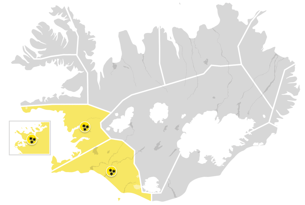 Á Suðurlandi tekur viðvörunin gildi á morgun, 28. okt. kl. 18:00 og gildir til kl. 12:00 á miðvikudag. Í viðvörunarorðum segir: Líkur á snjókomu eða slyddu, staðbundið talsverð eða mikil úrkoma með lélegu skyggni og versnandi akstursskilyrðum, einkum vestantil. Getur valdið samgöngutruflunum t.d. á Hellisheiði og í Þrengslum.