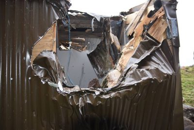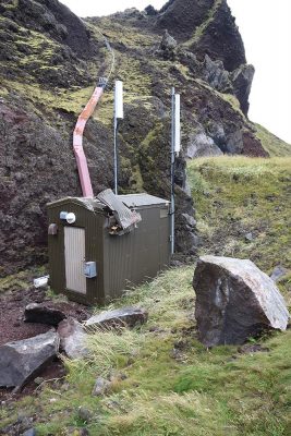 Vodafone gámurinn ónýtur eftir grjóthrun